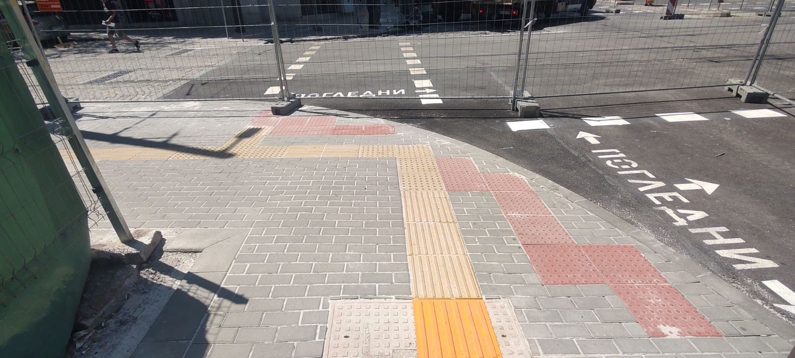 „Изпълнението на достъпната среда за незрящи е съобразено с изискванията“, каза Недялко Димов. „Извършен е вече монтаж на тактилни водещи линии на местата, където има ревизионни шахти, след извършена доставка от изпълнителя“, обясни инж. Иво Иванов, представител на Строителния надзор на обекта.