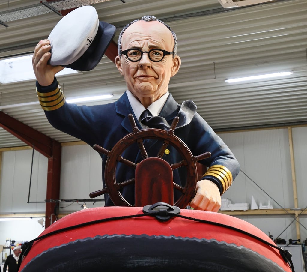 Карнавална лодка, изобразяваща германския канцлер Фридрих Мерц. Снимка: EPA