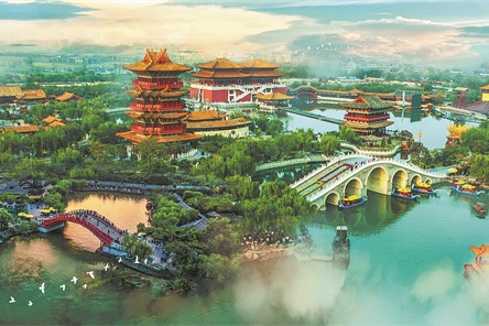 Градският парк Милениум в Кайфенг, провинция Хенан, е пресъздаване на древния свитък покрай реката по време на фестивала Цинмин.[Photo provided to China Daily]