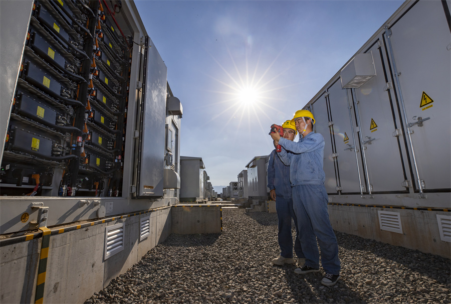 Работниците извършват проверки за безопасност на електрическото оборудване в Wuzhong, автономна област Нинся Хуей, през август. [Photo/Xinhua]
