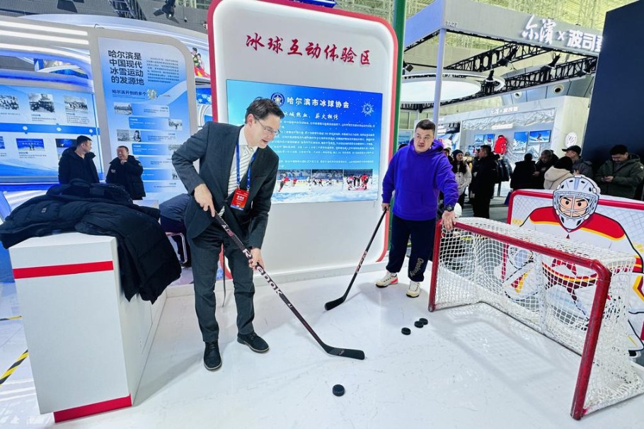 Представител на Глобалния диалог на кметовете · Харбин тренира хокей на лед на Международното изложение за лед и сняг Harbin 2026 във вторник в Харбин, провинция Хейлундзян. [Photo by Zhou Huiying/chinadaily.com.cn]