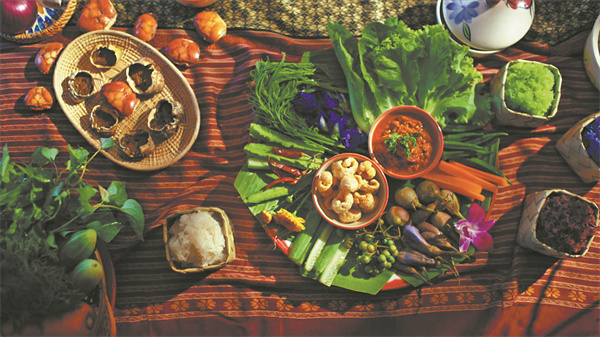 Лепкав ориз, сервиран със северен тайландски сос за потапяне, както е показано в документалния филм Tasteful Thailand, копродукция на Китай и Тайланд. КИТАЙ ДЕЙЛИ