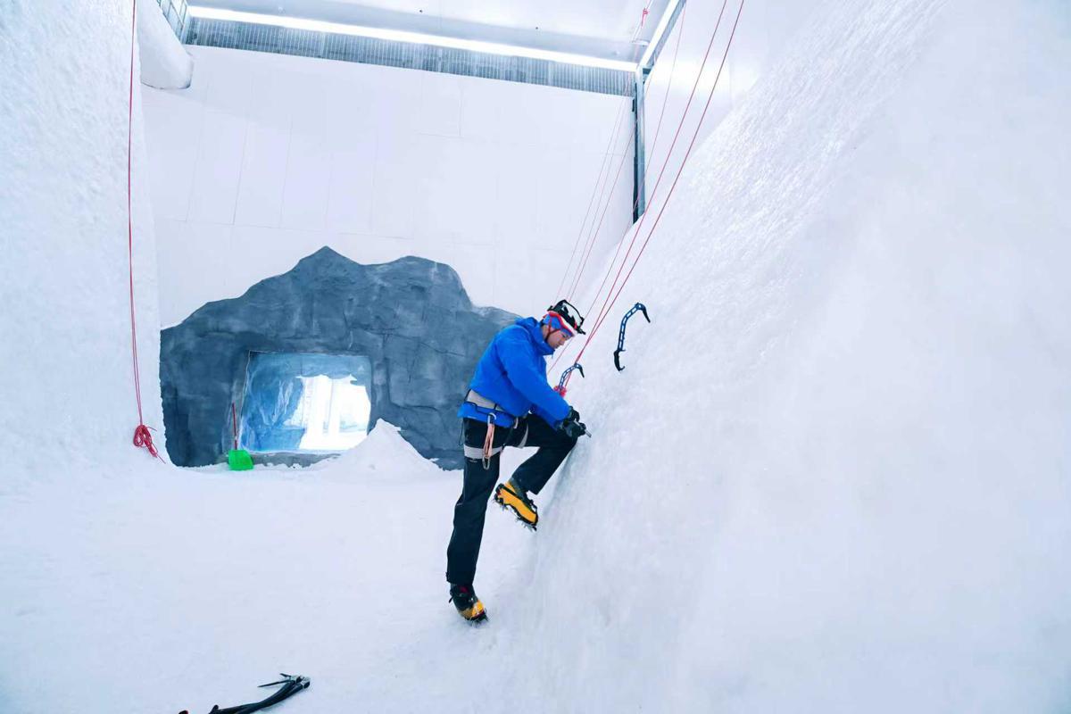 Клиент пробва ледено катерене в новооткрит закрит център за ледено катерене в бъдещия град на науката и технологиите Чънду в провинция Съчуан. [Photo provided to chinadaily.com.cn]