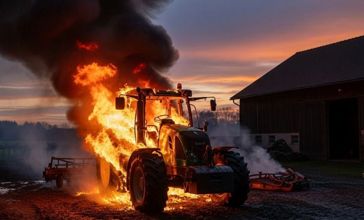 Голям пожар избухна в стопански двор в с. Николово късно вечерта. Запалил се е трактор, като пламъците са застрашили цистерна с гориво.