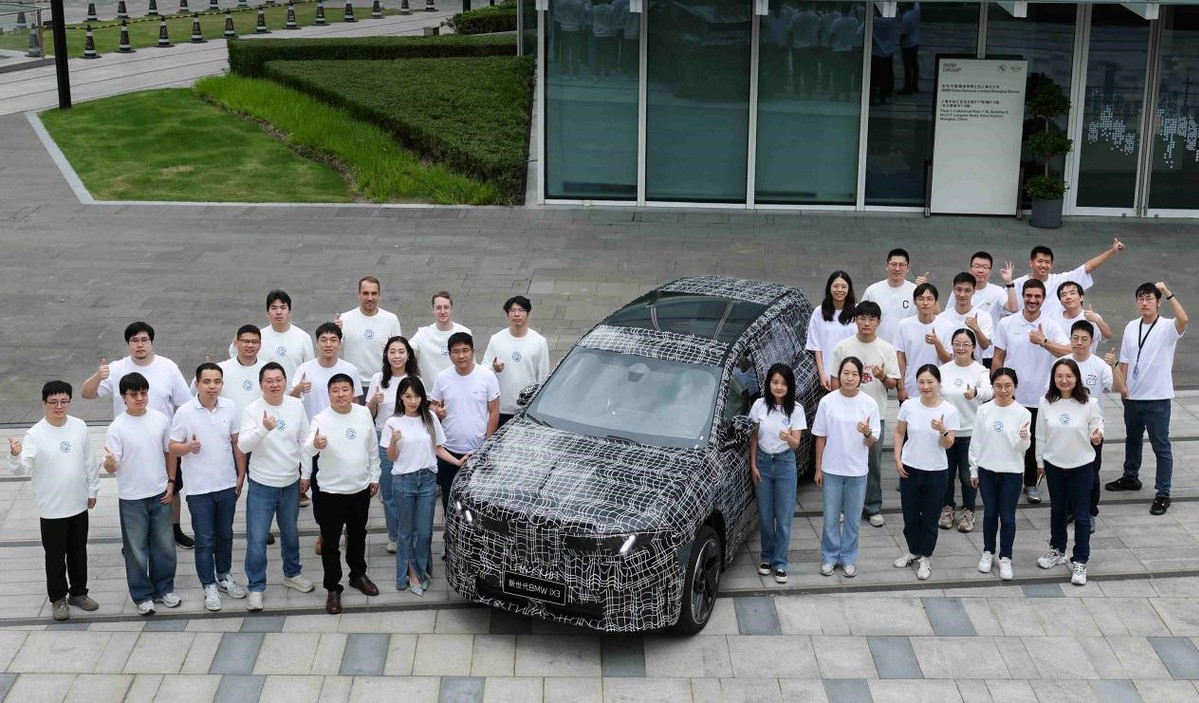 Инженери от BMW и Momenta позират с iX3, който е планиран да излезе на пазара в началото на 2026 г. [Photo provided to chinadaily.com.cn]