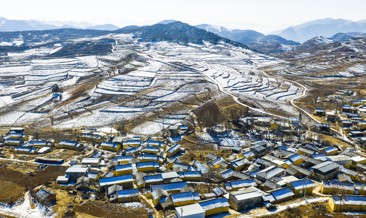 Снежни одеяла покриват терасовидни полета и села в град Майинг, Луннан, в китайската провинция Гансу. [Photos provided to chinadaily.com.cn]