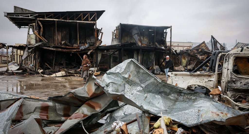 Афганистан и Пакистан са вкарани в ескалиращ конфликт заради твърденията на Исламабад, че Кабул укрива екстремисти, отговорни за трансгранични атаки, които талибаните правителството отрича. Афганистанци се разхождат сред отломките на мястото на център за рехабилитация на наркомани, разрушен при пакистански въздушен удар в Кабул на 16 март. Снимка: Ройтерс Пакистан твърди, че е ударил военна инсталация и не отговори на въпроси относно възможно разследване на смъртоносния атентат в Кабул.