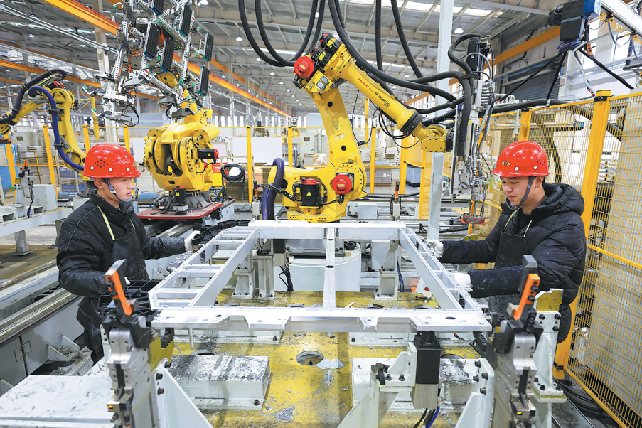 Служителите работят върху производствената линия на аксесоари за NEV батерии във високотехнологична компания в Хуайбей, провинция Анхуей. LI XIN/ЗА КИТАЙ ДЕЙЛИ