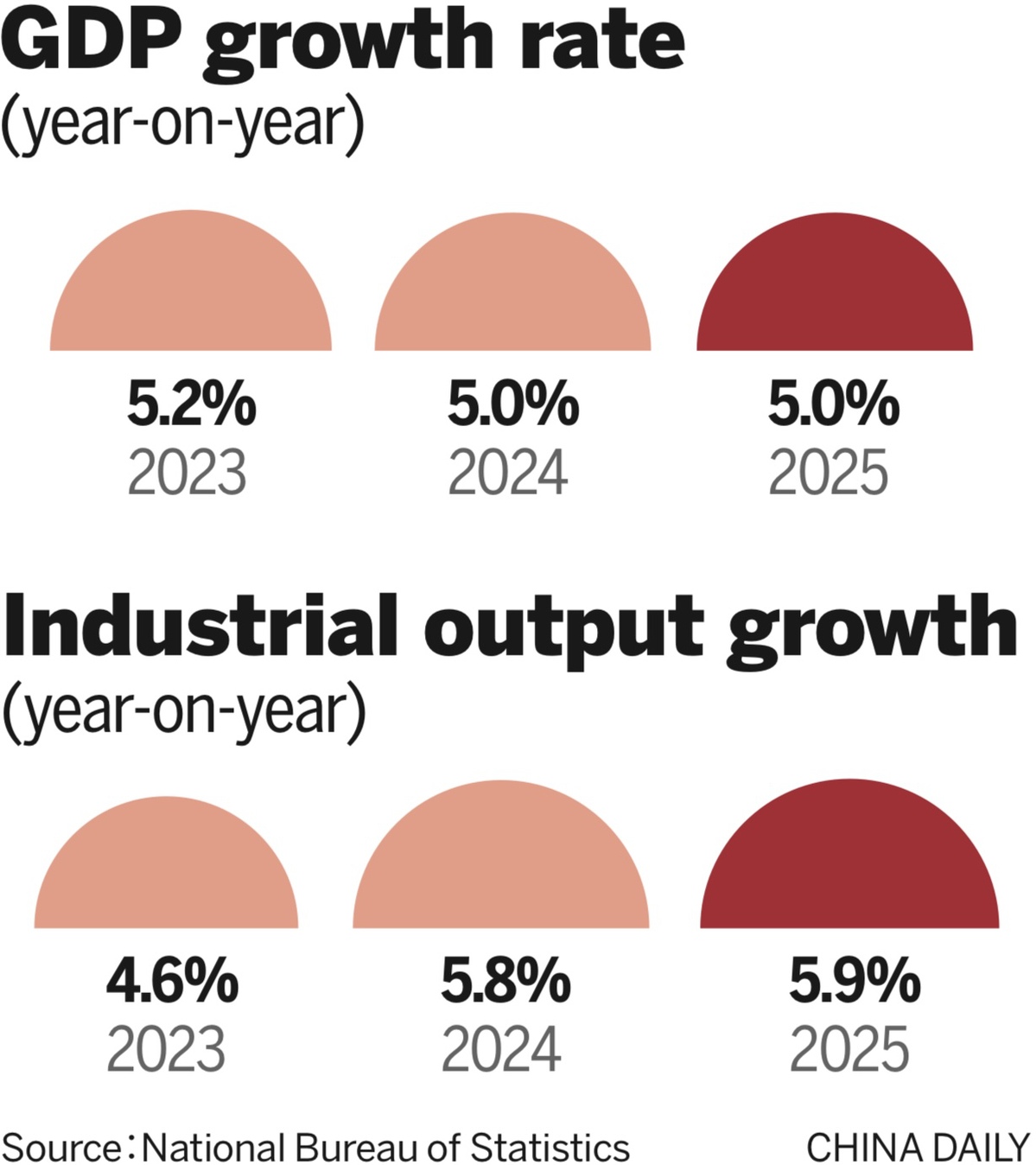 Официални данни, публикувани в понеделник, показват, че брутният вътрешен продукт на Китай е нараснал с 5 процента миналата година, отговаряйки на годишната цел на страната от около 5 процента. Трудно постигнатото представяне, постигнато на фона на засилен тарифен натиск, постави солидна основа за стабилен старт на икономическия растеж през 2026 г., засилвайки увереността, че втората по големина икономика в света остава на стабилна траектория.