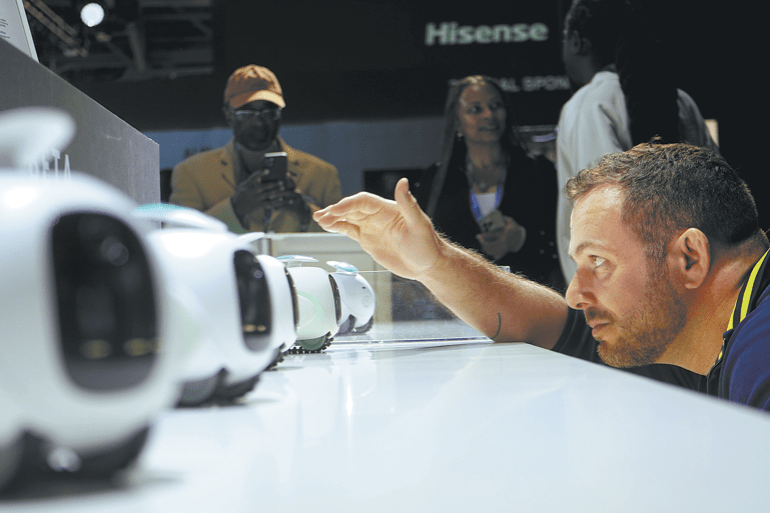 Посетител разглежда роботи с AI на щанда на Hisense по време на изложение в Лас Вегас. ДЗЕН ХУЙ/СИНХУА