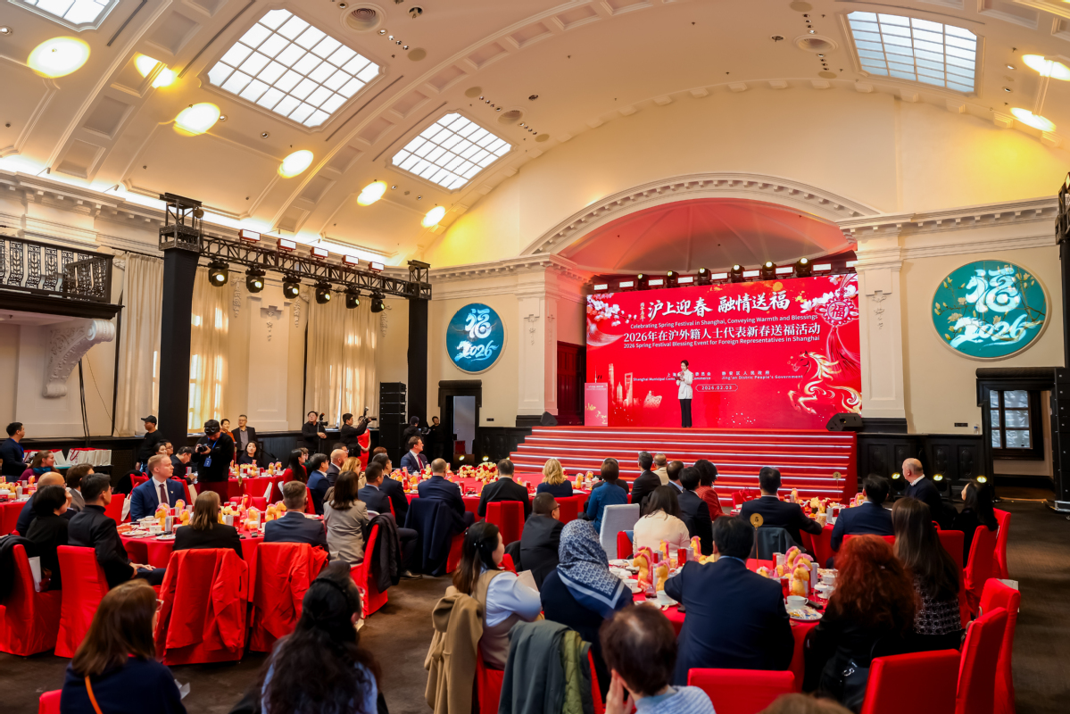 Повече от 70 чуждестранни гости от 23 държави и региони взеха участие в събитието за благословия на Пролетния фестивал за чуждестранни представители, проведено съвместно от Шанхайската общинска търговска комисия и правителството на област Дзин“ан на 3 февруари 2026 г. [Photo provided to chinadaily.com.cn]