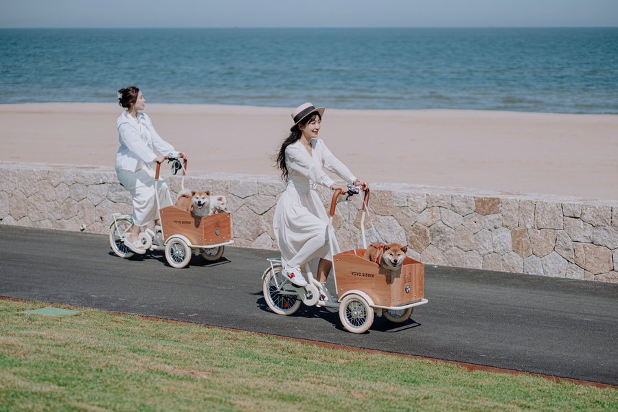 Карането на велосипед по крайбрежието е акцент в крайбрежния курорт Resea в Кинхуандао, провинция Хъбей. [Photo provided to chinadaily.com.cn]