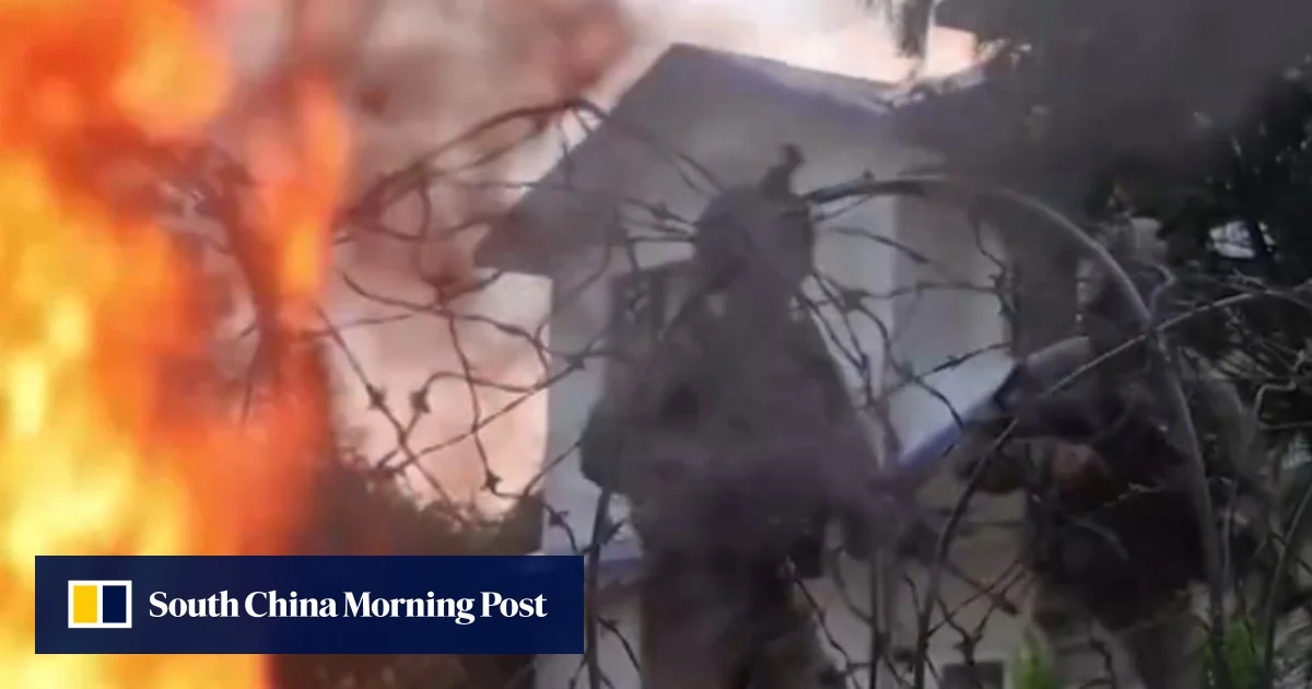 Войските на PLA бяха показани да се придвижват в зона с бетонни руини в леко защитено тактическо превозно средство. Снимка: Раздаване Въпреки че докладът не казва кога или къде е проведено учението, той беше излъчен скоро след тайванския лидер Уилям Лай Чинг-те предложи 40 милиарда щатски долара „допълнителен бюджет за отбрана“ за самоуправляващ се остров миналата седмица.