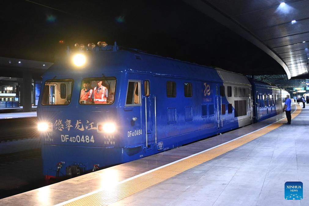 A tourist train for senior citizens departs from Harbin Railway Station in Harbin, Northeast China“s Heilongjiang province, Aug 22, 2025. [Photo/Xinhua]