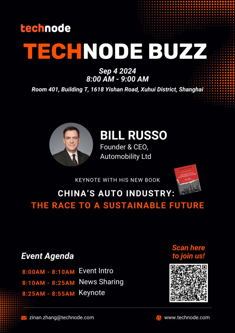 8:10-8:25 сутринта: Репортер на TechNode Джил Шен ще разбие най-значимите технологични истории от миналия месец в сектора на електромобилите – считайте го за вашето ръководство, за да бъдете информирани.